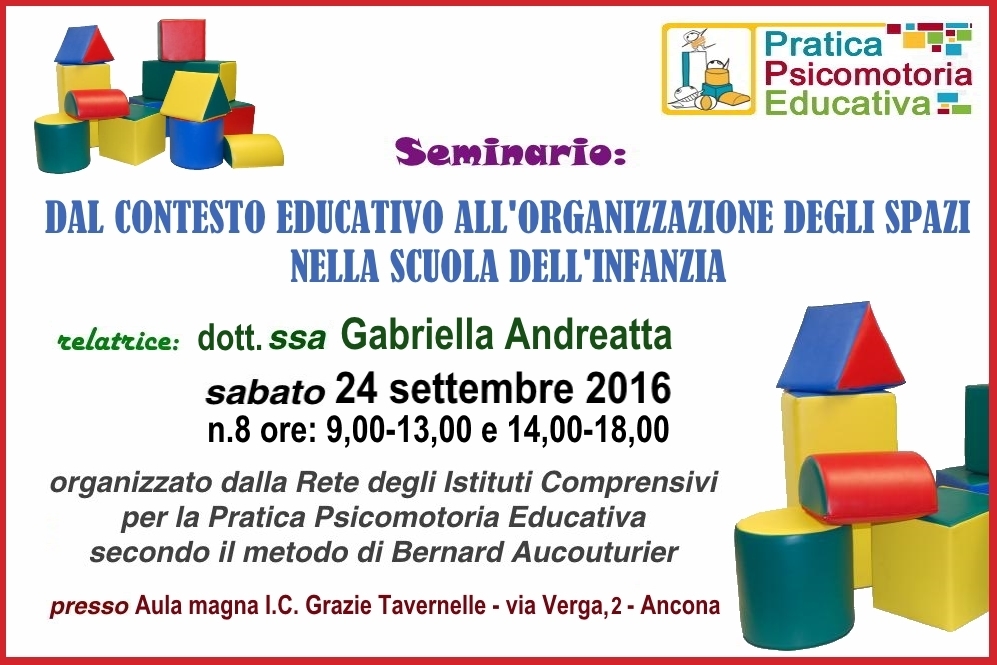 Adesione online al SEMINARIO “Dal contesto educativo all’organizzazione degli spazi nella scuola dell’Infanzia” – sabato 24 Settembre 2016