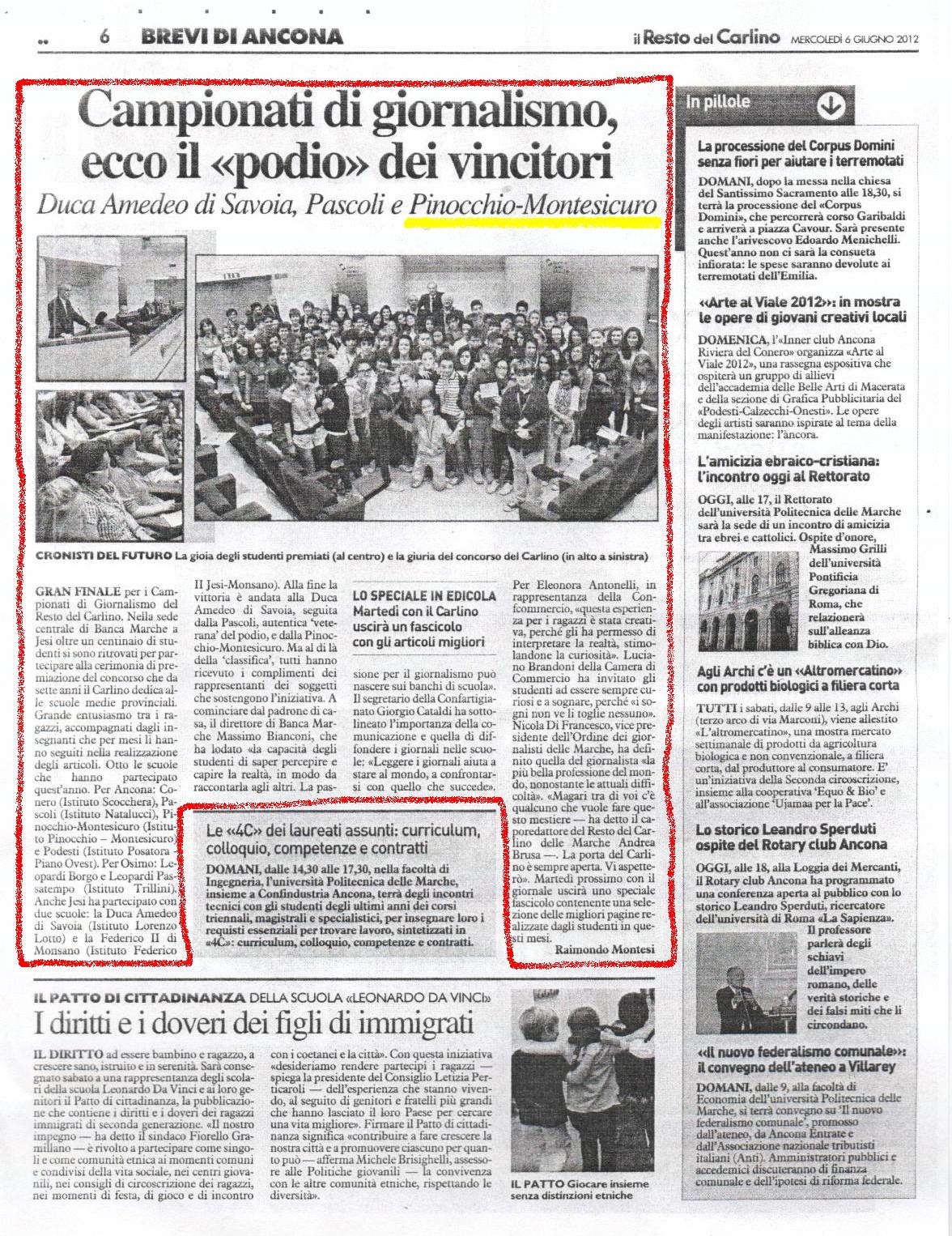 Di seguito l’articolo comparso nel quotidiano il giorno 6 giugno 2012.