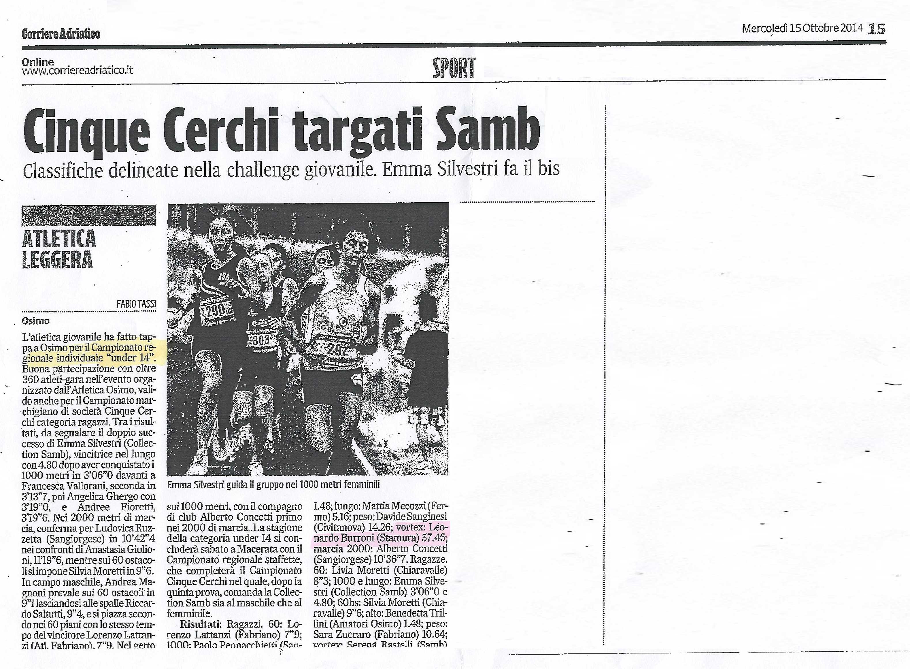 Di seguito lo stralcio dell’articolo pubblicato dal Corriere Adriatico il 15/10/2014: