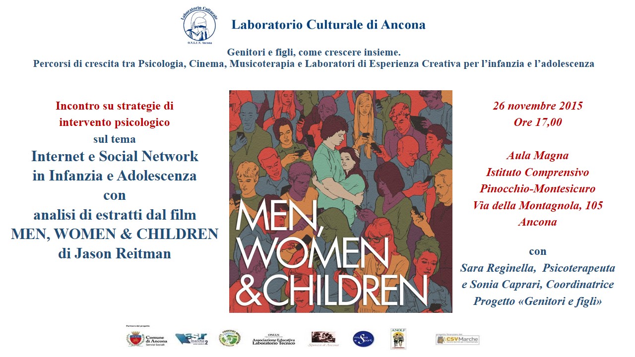 Insieme alla psicoterapeuta Sara Reginella tratteremo le strategie di intervento psicologico sul tema “Internet e Social Network in Infanzia e Adolescenza”, con analisi di estratti dal film “Men, women and children” di Jason Reitman.