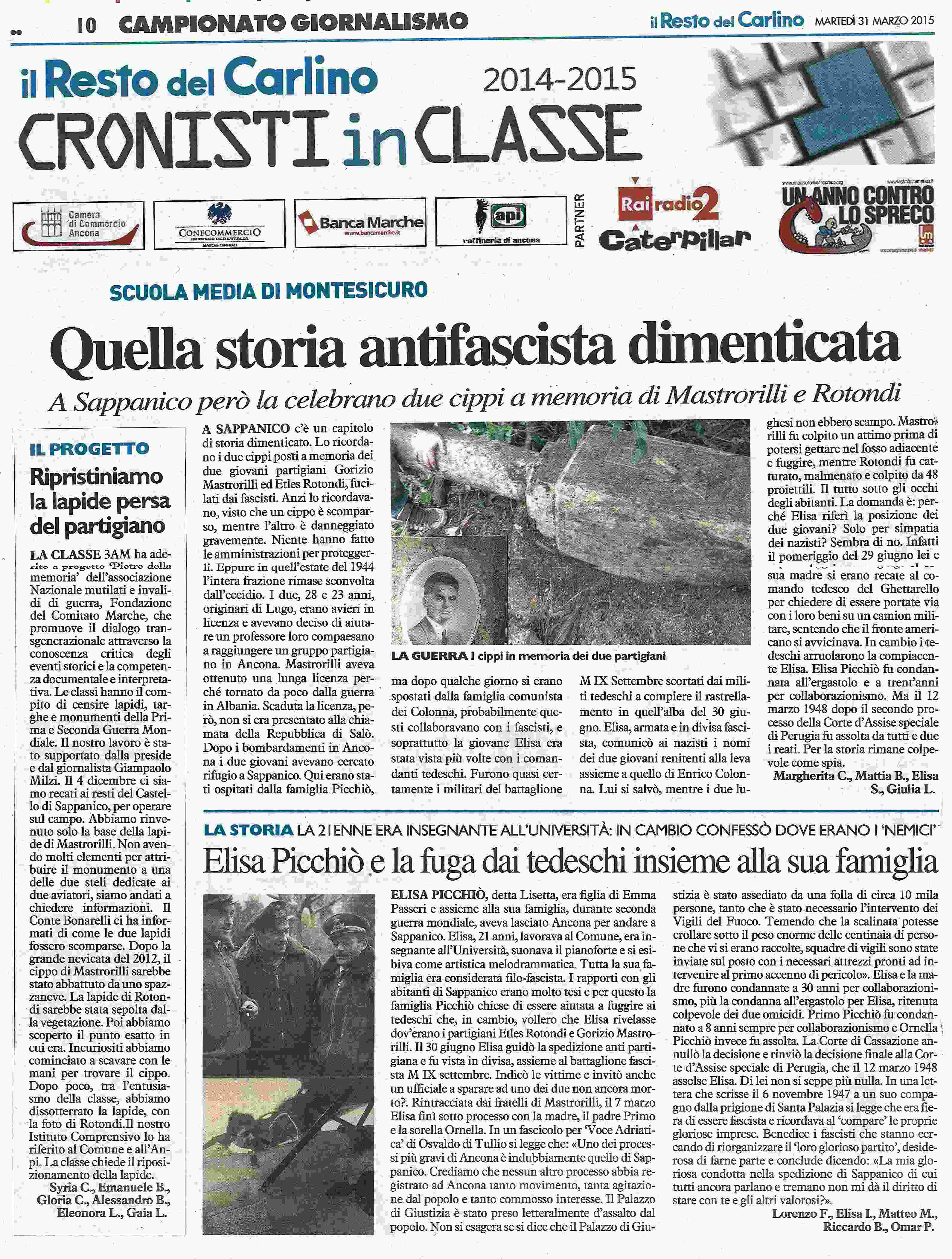 Nella pagina del Resto del Carlino del 31 marzo 2015 è ricostruita la storia dell’eccidio e del ritrovamento della lapide:
